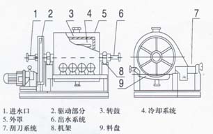 转鼓干燥是通过转动的转鼓,以热传导方式,将附在转鼓外壁的液相物料或带状物料进行加热干燥的一种连续操作设备。